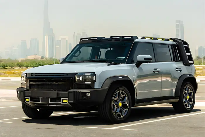 اختيار السيارة المناسبة لرحلتك في دبي أمر بالغ الأهمية. تقدم “كينج واي لتأجير السيارات” طراز جيتور T2 دينفدر كيت 2025 الجديد للتأجير في دبي. إنها سيارة دفع رباعي فاخرة ومتعددة الاستخدامات وأنيقة، مثالية للتنقل في شوارع المدينة المزدحمة واستكشاف المناظر الصحراوية الرائعة. هذه السيارة عملية أيضًا للقيادة في الطرق الوعرة.
