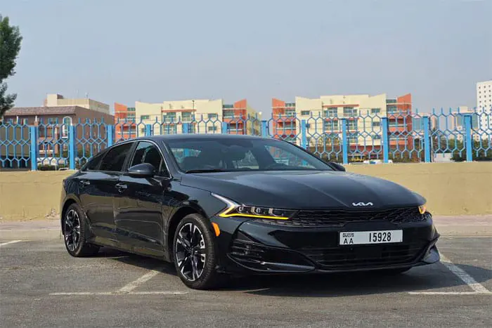استئجار سيارة اقتصادية في دبي كيا K5 GT Line (أسود) سبورت سيدان موديل 2023 من شركة كينج واي لتأجير السيارات في دبي بأفضل الأسعار مع أفضل خدمة عملاء على مدار 24 ساعة في اليوم، كما لدينا خدمة توصيل السيارات مجانًا إلى المطار أو الفندق أو المنزل، استئجار سيارة في دبي بدون وديعة أو تأمين مطلوب.