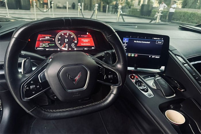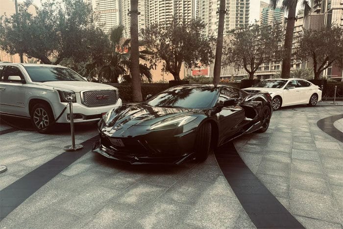 Sporty Design: The Chevrolet C8 Corvette’s exterior design is known for its streamlined silhouette, a truly modern design for a supercar with a convertible roof, perfectly suited to the wonderful atmosphere of Dubai.